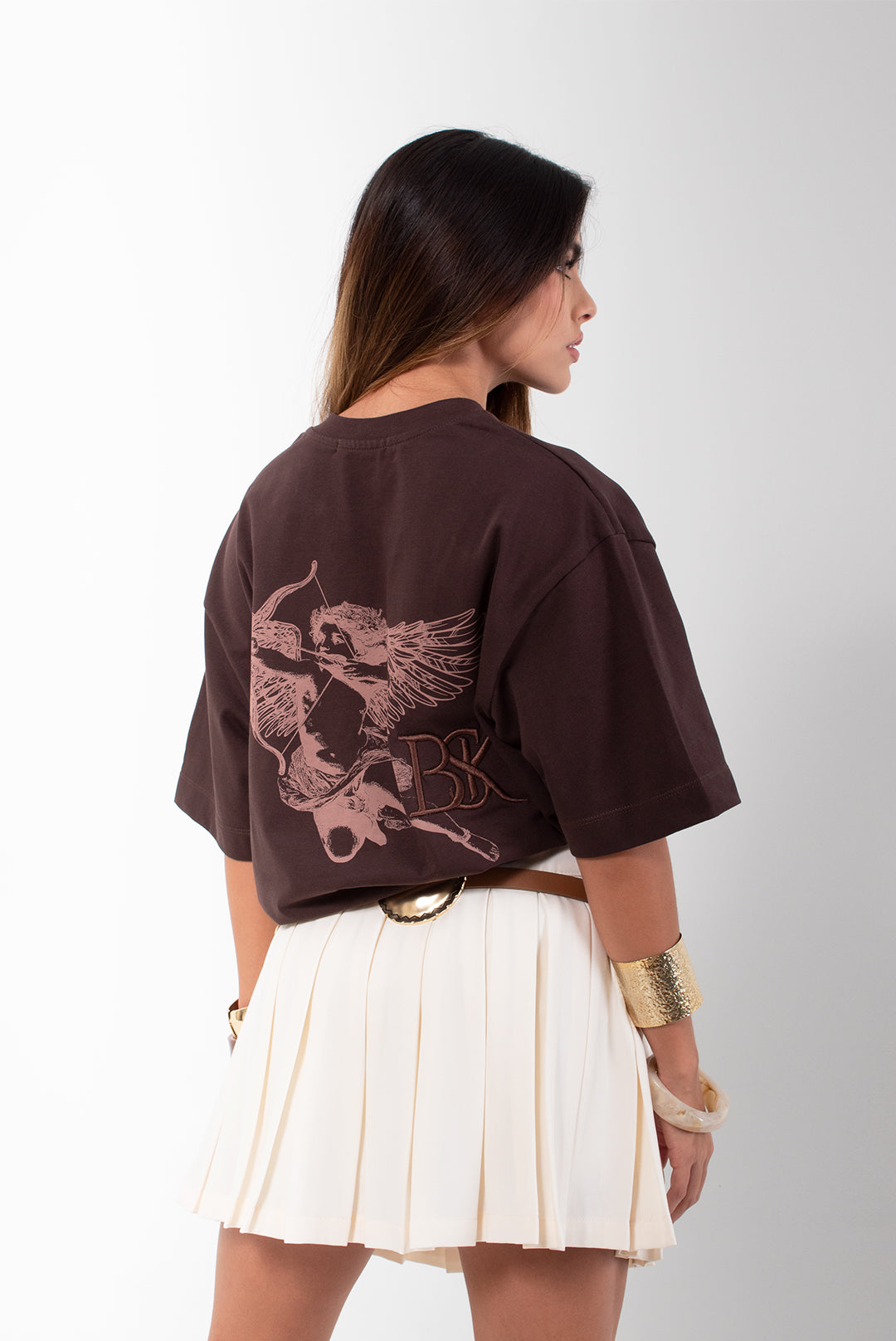 La Camiseta Elisee es una expresión de poder sereno y belleza atemporal. Su diseño oversize y su tonalidad profunda evocan sofisticación, mientras el estampado angelical en la espalda aporta un toque místico y celestial que eleva cualquier look.