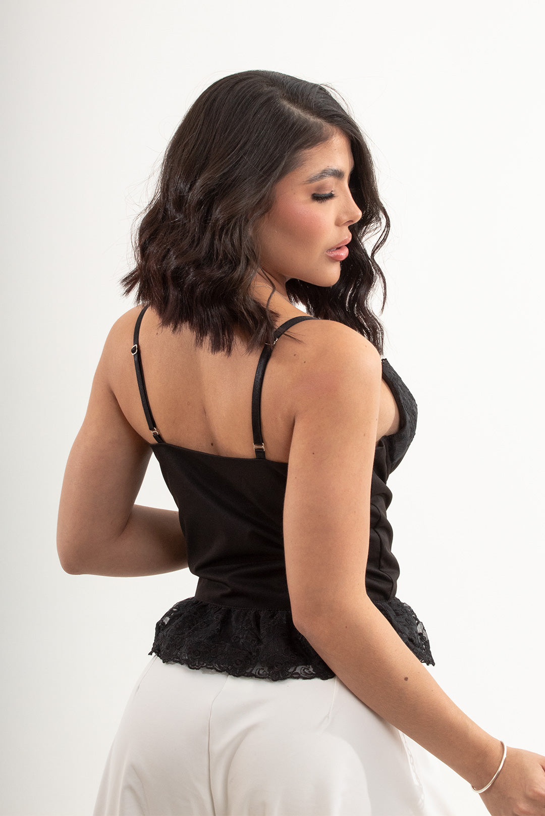 El Corset Miranda es una pieza clave que combina la sensualidad de un corset clásico con la modernidad de un diseño fresco y elegante. Su ajuste ceñido define la silueta, mientras que el delicado encaje en la parte superior aporta un toque femenino y sofisticado. Con un diseño de corset que favorece la figura, es perfecto para armar outfits de impacto, ya sea para un look nocturno o para elevar un conjunto más casual.