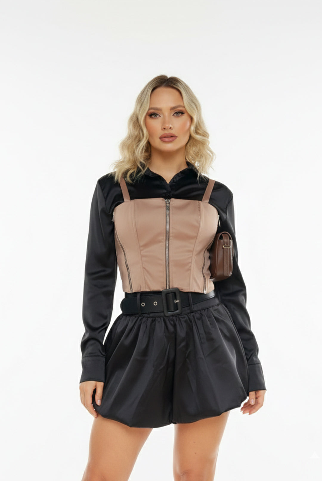 La Falda Globo Corta es perfecta para darle un toque de estilo y sofisticación a tu outfit. Con un diseño moderno y materiales de alta calidad, esta falda es ideal para cualquier ocasión.