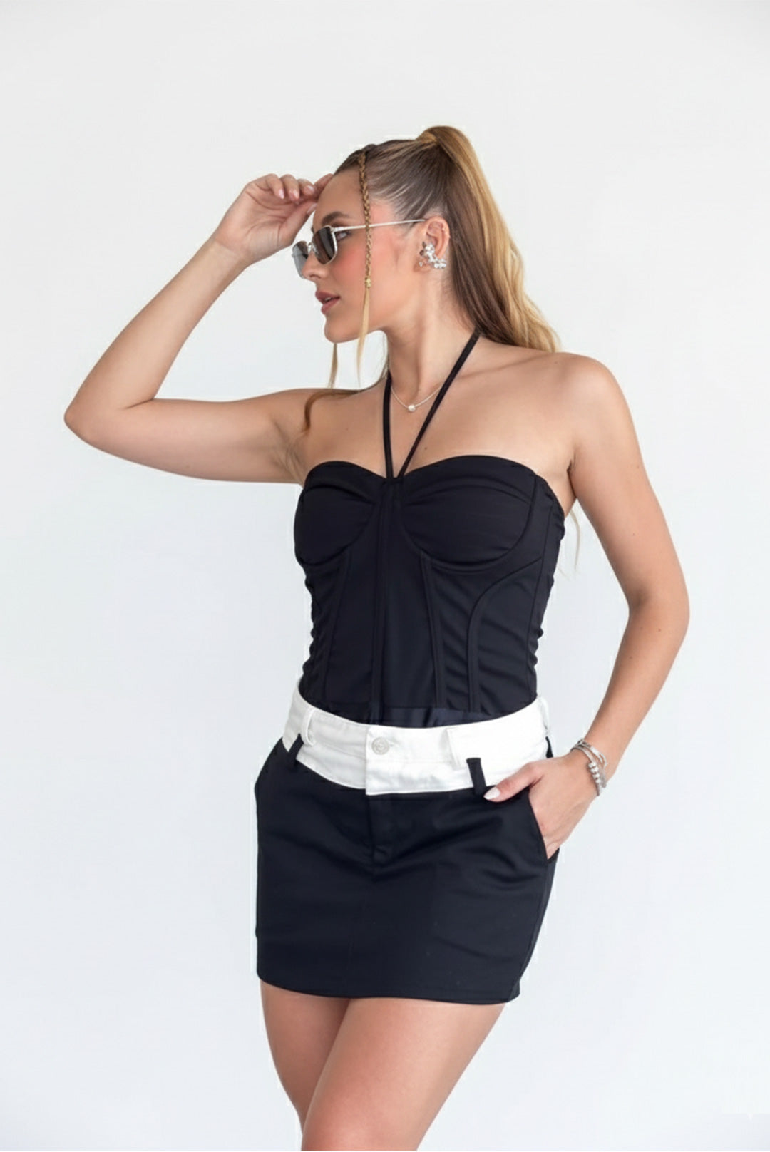 La Falda Con Pretina Indigo es perfecta para darle un toque de estilo y sofisticación a tu outfit. Con un diseño moderno y materiales de alta calidad, esta falda es ideal para cualquier ocasión.
