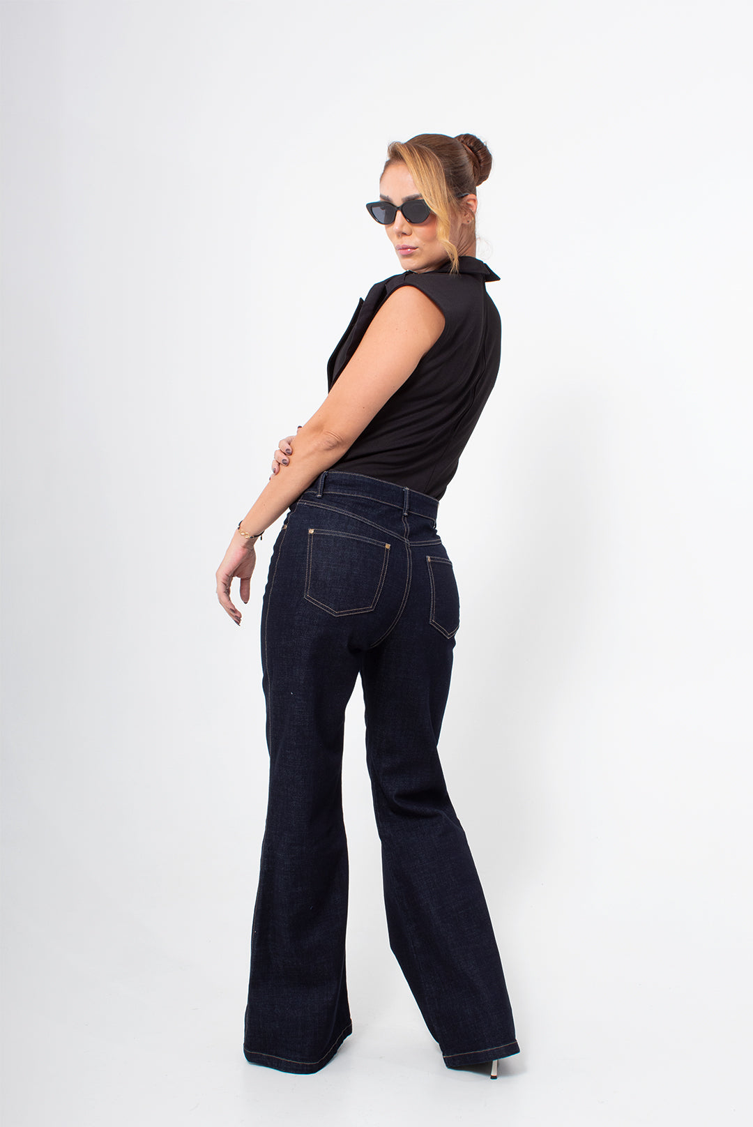 El Jean Flare es esa pieza que hace magia en el clóset: clásico, estilizador y con una actitud silenciosa pero imparable. Su denim índigo profundo y su tiro alto abrazan la cintura con firmeza y comodidad, mientras la bota flare alarga visualmente las piernas y aporta ese aire setentero–moderno que se ve ultra pulido con tacones, plataformas o tenis. Es el tipo de jean que se siente elegante sin esforzarse: define, equilibra y eleva cualquier look en segundos.