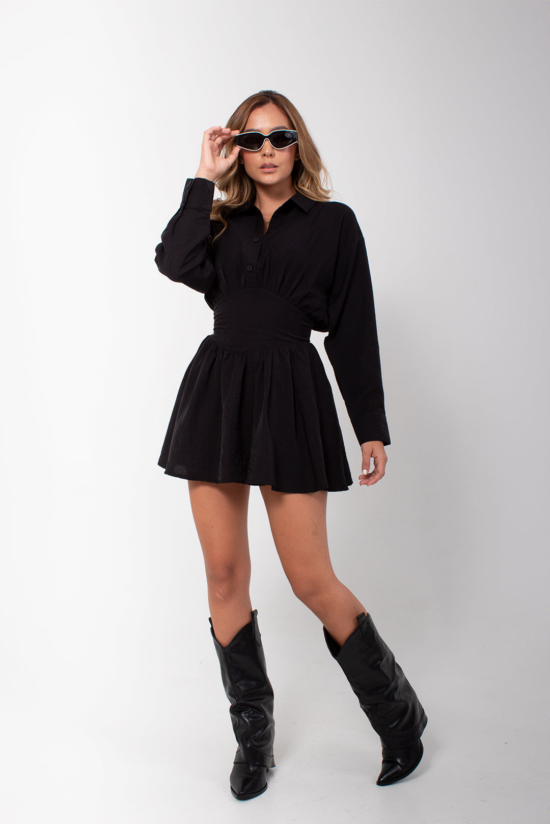 El vestido ZAFIRO es una declaración de estilo atemporal, que combina frescura y sofisticación en una sola pieza. Su silueta mini con falda amplia aporta movimiento y ligereza, mientras que la parte superior tipo camisera con botones y mangas abullonadas le da un aire moderno y elegante. El cinturón ancho en contraste define la cintura y resalta la silueta, creando un equilibrio perfecto entre comodidad y feminidad.